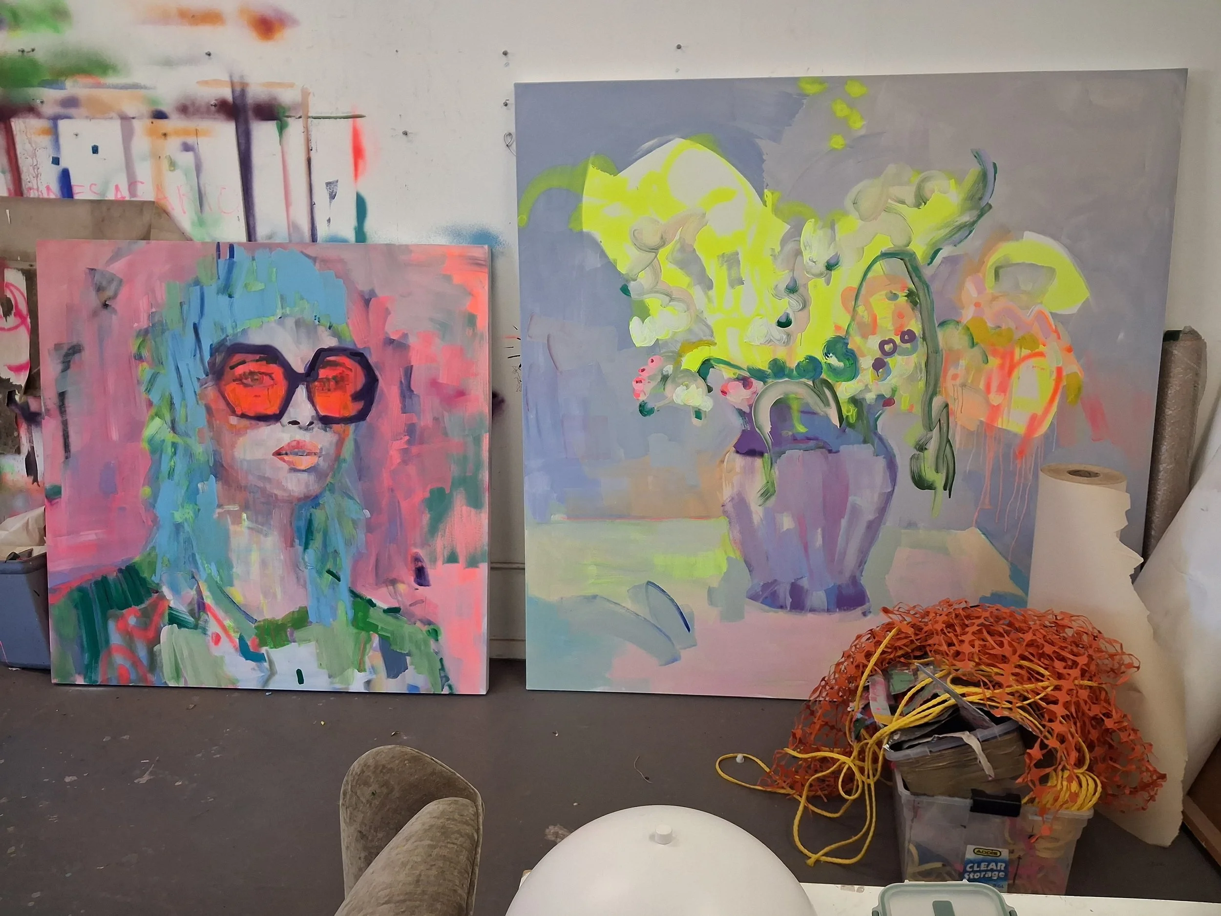About her still life paintings, she has the following to say; “I paint flowers as a reference to objectification. With hints of female anatomy and subversive organic shapes created by the spray can and paintbrush, I have created an urban take on the classical still-life painting.”