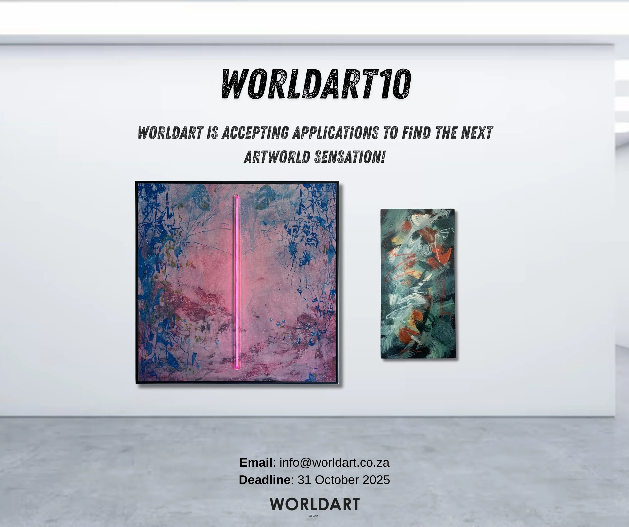 Artists must submit their portfolio (PDF) and bio via email to info@worldart.co.za