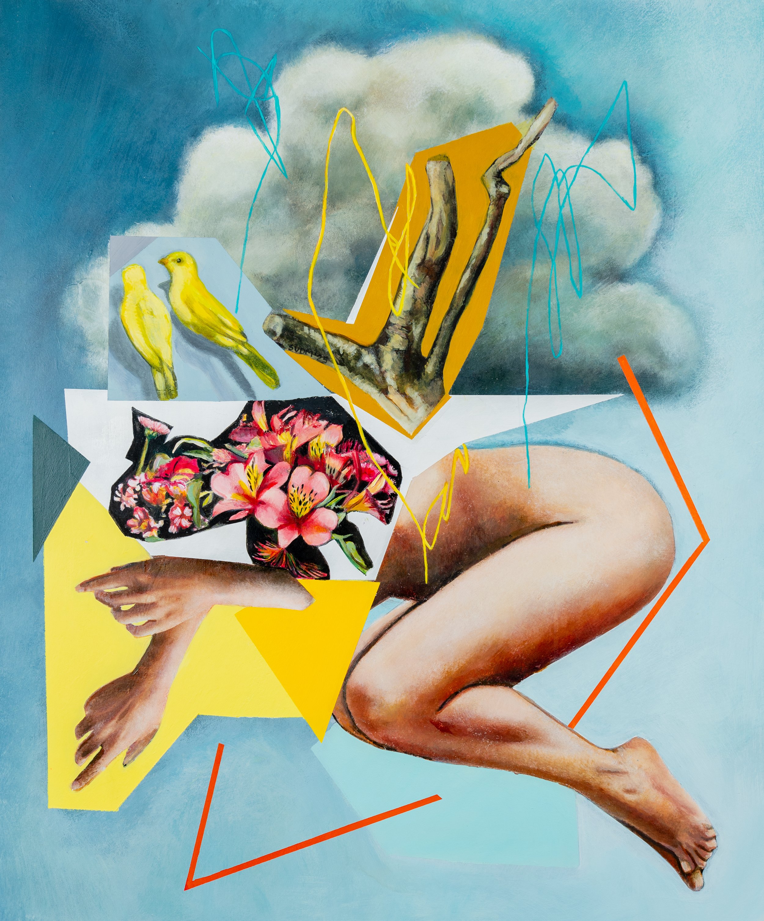 Sulette van der Merwe is known for paintings that resemble collages of charged scenes with a surrealist slant, painted with precision and eloquence.